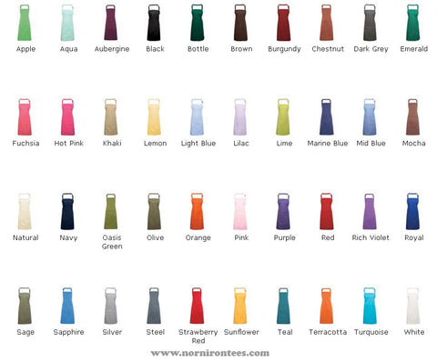 Our fantastic aprons come in 40 lovely colours and have a very handy pocket in the front.